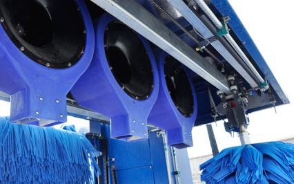 進口意大利塑玻絲輪刷,根據光電開關感應判斷車身位置,輪刷啟動至輪轂位置,開始清洗,正反旋轉刷洗輪轂,電腦洗車機全程電腦全自動控制輪刷伸縮。